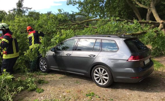 Am Samstag, den 12.06.2021 um 17:18 Uhr wurden die Kameraden des Löschzuges Kröpelin zur einer technischen Hilfeleistung alarmiert. In Kröpelin, Am Torfmoor, war ein großer Ast auf einen PKW gefallen. Die Kameraden beseitigten die Gefahrenstelle mit der Motorkettensäge und Drehleiter.