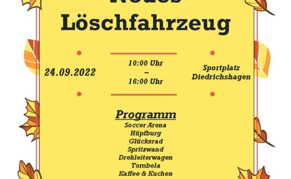 Am Sonnabend den 24.09.2022 soll um 10.00 Uhr die feierliche Übergabe des neuen Löschfahrzeuges TYP TSF-W an die LG Jennewitz erfolgen. Im Zeitraum vom 10.-16.00 Uhr ist dann ein buntes Programm mit Hüpfburg, Drehleiter, Soccer-Arena und vielem mehr geplant. Für das leibliche Wohl vor Ort wird gesorgt. Kommen Sie gern […]