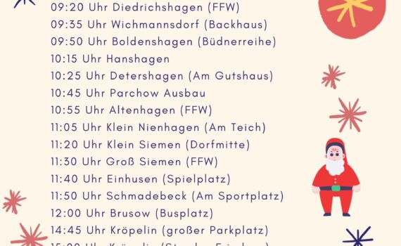Die Gemeindefeuerwehr Kröpelin bringt den Weihnachtsmann zu euch: